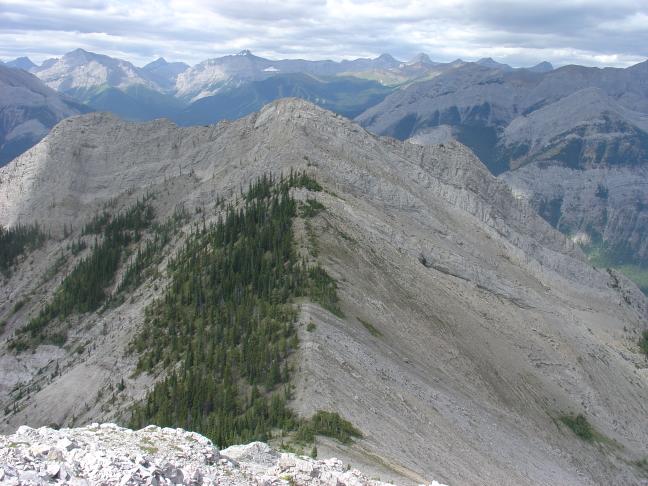 A view of the West summit from the South summit. There is more ridge there, and an interesting-looking scramble coming up!