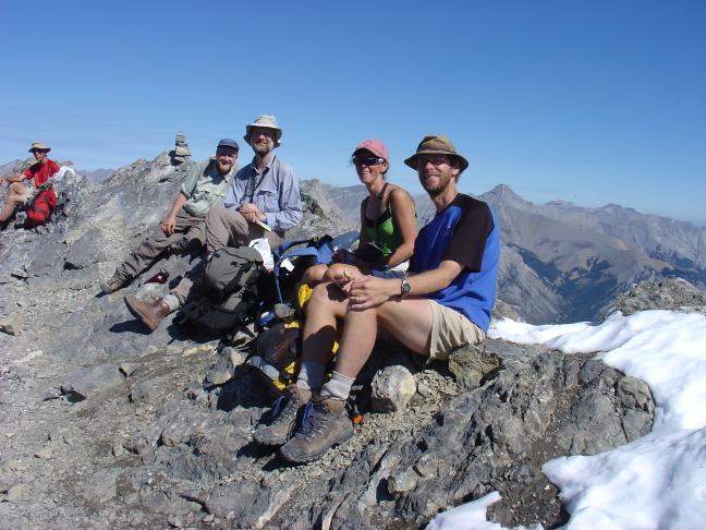 Me, Mark, Janet, and Bruce basking in the sun on the summit.