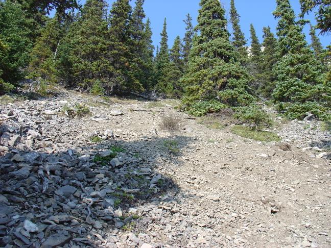 To the right of the first cliff band, you must scramble up this slope. It's a lot steeper than it looks!