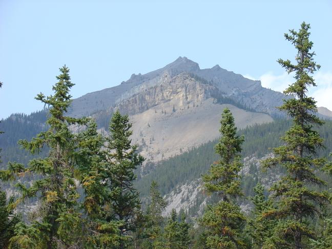 On the trail back from the entrance to Grotto Canyon, you can see the first scree slope below the first major cliff band, which you follow to the right, then up.