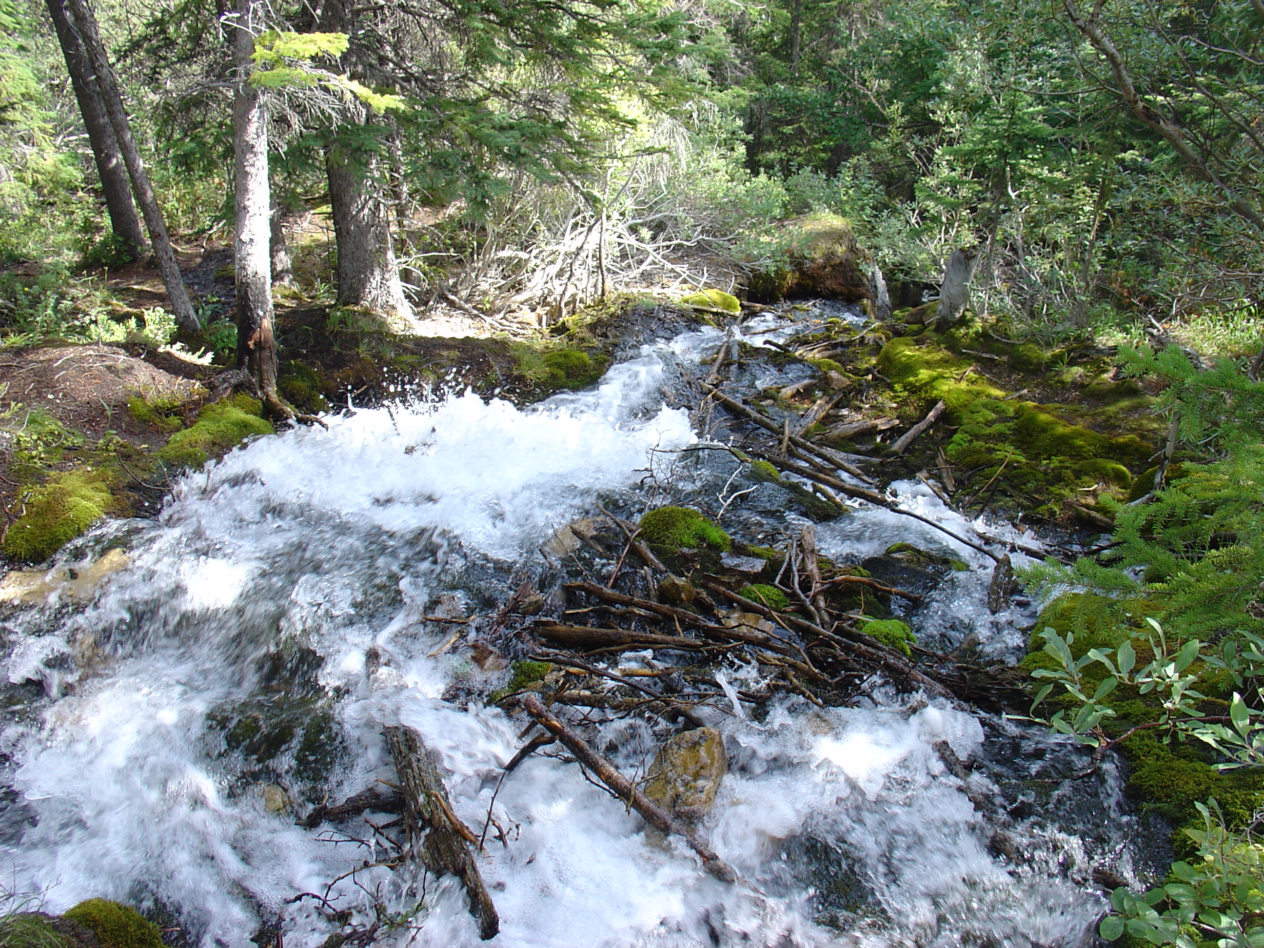 The outlet of the lakes, from the log bridge.