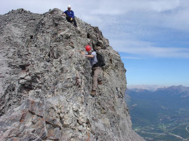 Mark on the crux while Kevin patiently awaits his turn.