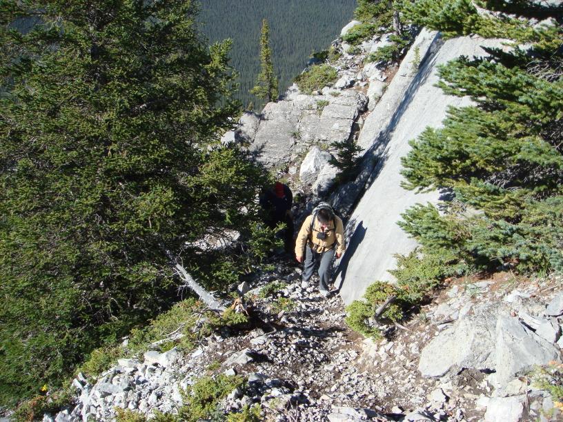 Slogging up the hill near the bottom. Chris still has his coat on! What a crazy-man!