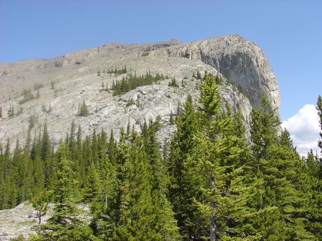 peeking up above the ridge near the top. You can also see the cliff
