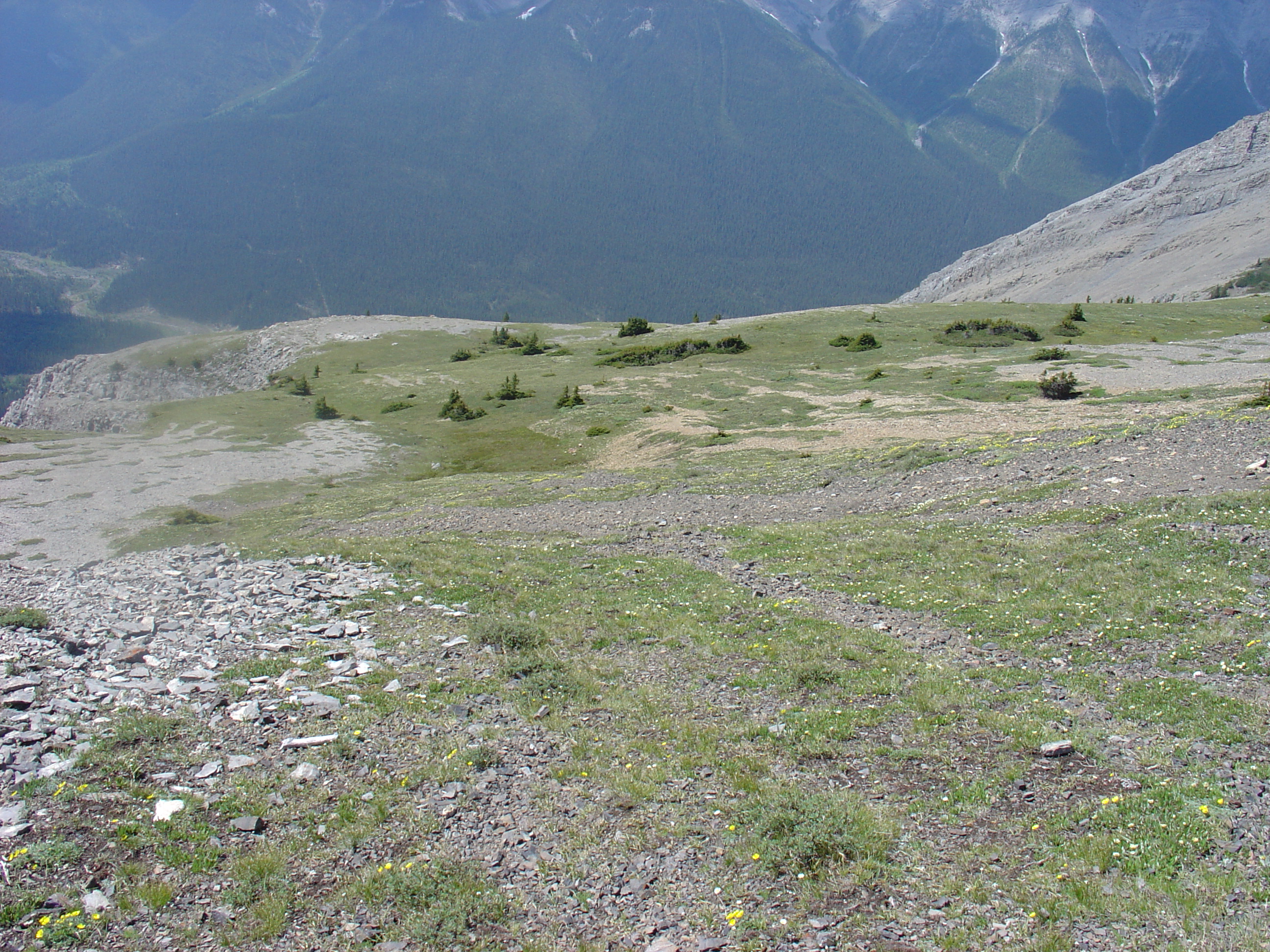 A view of the alpine meadow from neat the bottom of the summit ridge.